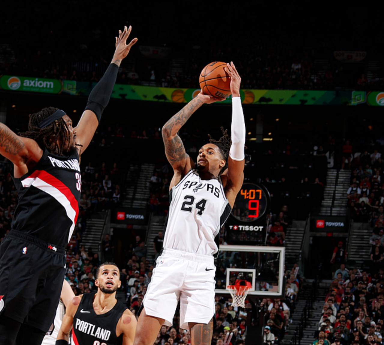 文班是个怪兽,文班今日17中9(三分4中1)得到27分11板3助4断7帽,正负值+28全场最高,有文班后马刺的防守级别可以提升到一个让对手绝望的程度,在文班的防守范围内对手很难得分,一旦对手三分失准,就很难和马刺抗衡了。开拓者今日下半场只得到35分,文班的防守威力太可怕。