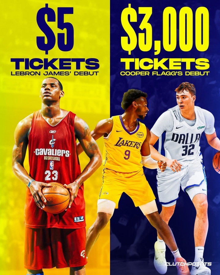夏联票价对比:詹姆斯首秀一律5美元 弗拉格首秀最贵超3000美元